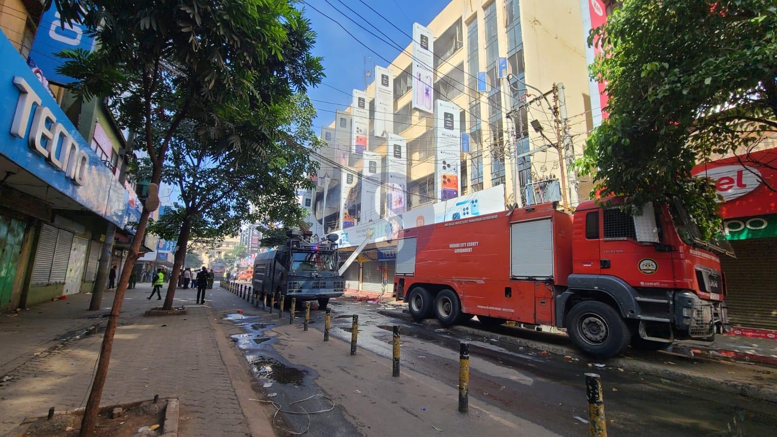 The blaze, which engulfed a building housing several electronics shops, brought normal operations along the busy Nairobi CBD street to a standstill.