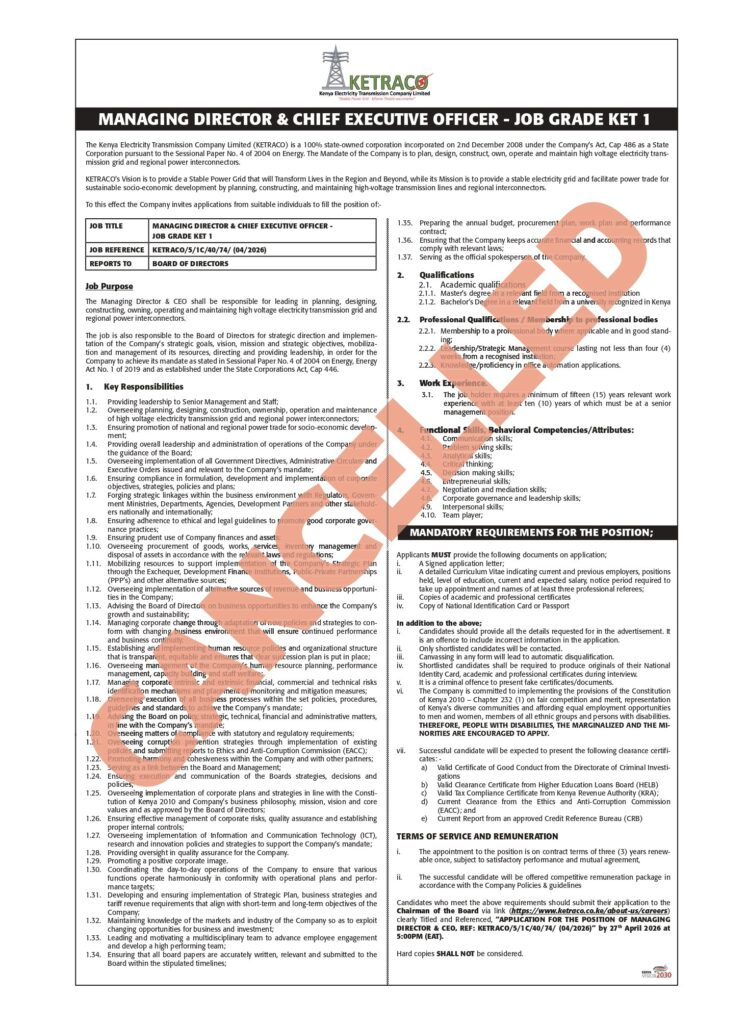KETRACO is expected to re-advertise the CEO position—but under significantly increased scrutiny from legal experts, policymakers, and the public.