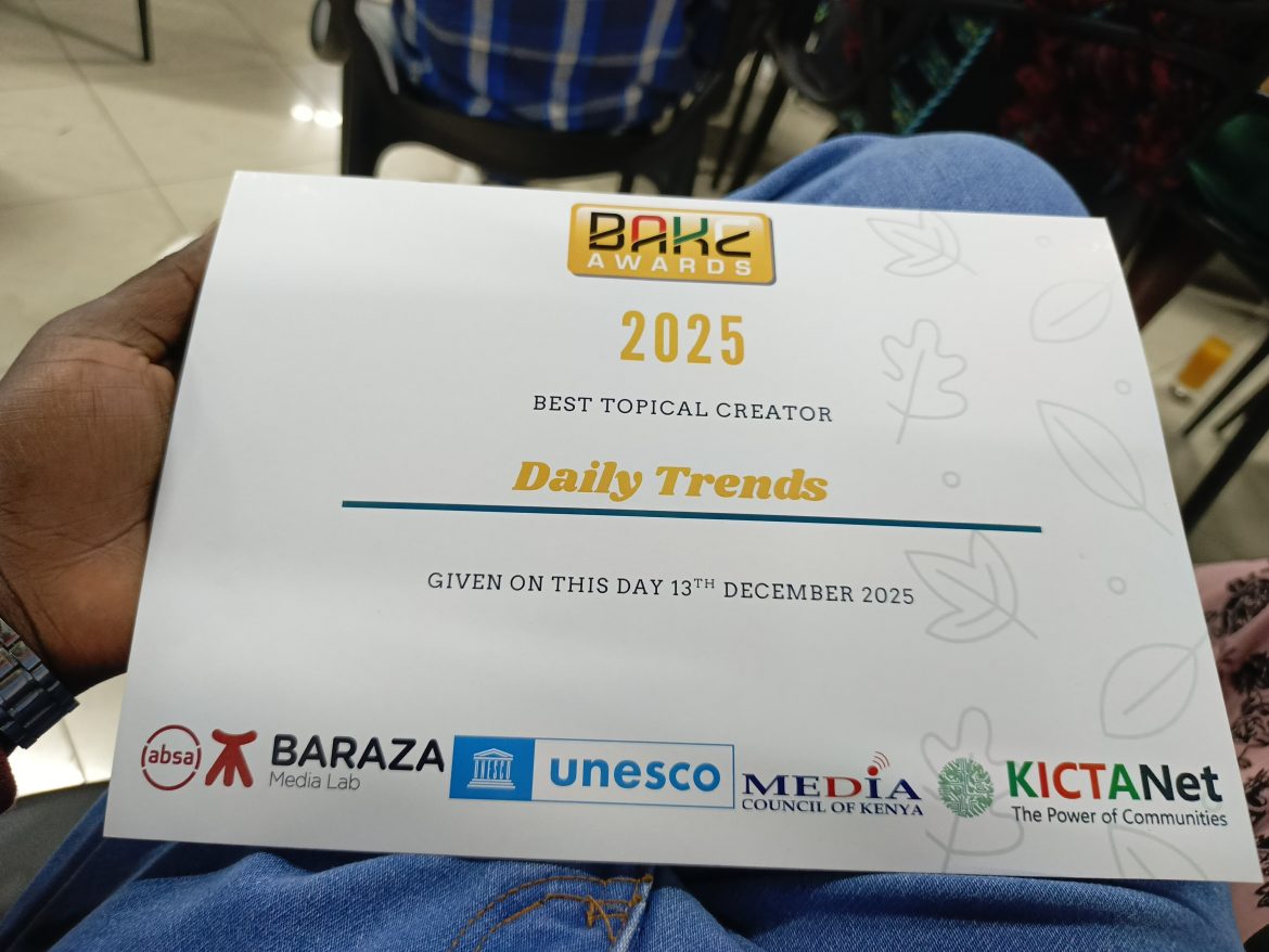 Daily Trends has won the prestigious Best Topical Creator of the Year award in the 2025 Bloggers Association of Kenya (BAKE) awards.